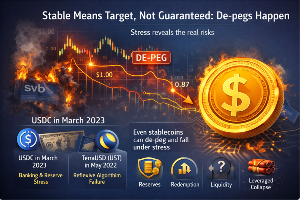 There is also a subtler form of de-peg risk: collateral contamination. If one widely used stablecoin wobbles and other protocols or products rely on it as collateral, liquidity, or a settlement asset, the stress can propagate quickly. (See: USDC depegs after SVB exposure)