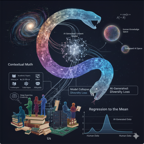 So won’t this be regression to the mean and mediocrity at scale over time? I asked an LLM about this once. The conversation is in this article Using AI for Mediocrity at Speed. But the crux of it is this: Over time, as we create more output base don AI, it gets fed back into foundational training models and other fine tuning as AIs update themselves. So they get fed back their own probabilistic output. I asked if this would result in regression to the mean. Apparently, this concern has a name. It’s either a feedback loop or model collapse, and it carries this risk because diversity and richness diminish over time. So what then?