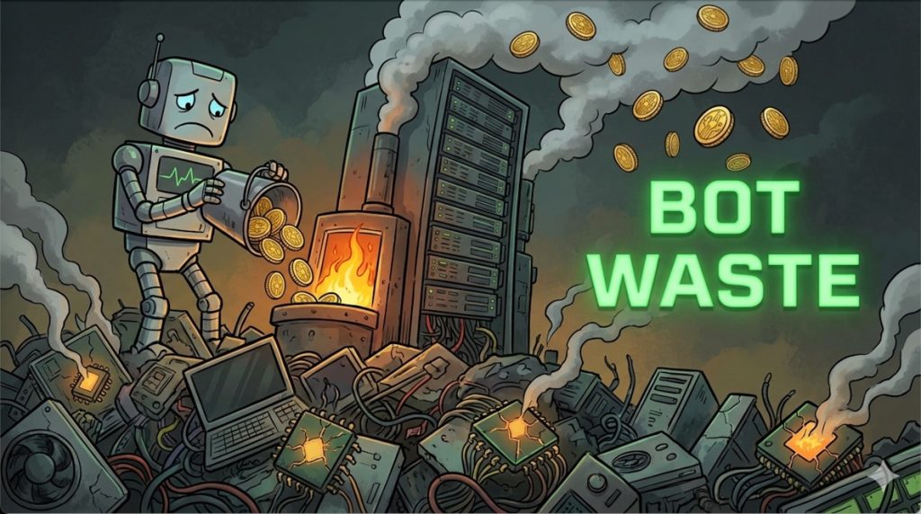 I realized I wasn’t building anything. I was optimizing efficiency for an inherently wasteful activity. Just streamlining the resource consumption of my toy so it could better consume resources talking to other toys. It’s like optimizing the fuel efficiency of a car driving in circles. (Okay, yes, we have NASCAR for that. But that’s different. Somehow. I think. Ever been to a race? It’s at least a party.) And this isn’t just a personal anecdote about $25. It’s a microcosm of what happens when we sleepwalk into bot-to-bot economies at scale: entire layers of infrastructure that exist only to facilitate other infrastructure consuming resources, producing nothing of human value. (Fair enough, that’s a value judgement on my part. I’m not talking about everything, just a lot of what I happened to see.)