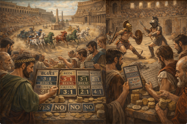 A prediction market is a market where people trade on the likelihood of a future event. The price becomes a rough signal of collective probability. Let’s try a simple model. If a contract tied to a yes bet is that the contract pays $1 if the event happens and $0 if it does not, then a market price of $0.70 implies probability of about 70%, or exactly so assuming a perfect and liquid market. For example, “Feature X launches by June 30” is trading at 70 cents, the market is effectively saying there is about a 70% chance that happens. If you were playing for money, you’d pay $0.70 per contract. If you buy that contract for $0.70 and the event happens, you receive $1 at settlement, so your profit is $0.30 per contract. (That works out to a return of about 42.86 percent on the money you risked; the math is return = profit / risk, or $0.30 / $0.70) If the event does not happen, the contract settles at $0, so you lose the $0.70 you paid. In that sense, the market price is doing two things at once. It suggests the crowd’s rough probability estimate, and it determines the upside and downside of the bet. In practice, the market price can move over time as traders react to new information, so different people may buy or sell the same contract at different implied probabilities. (Just note one nuance: If traded on an exchange the price is not just abstractly “the market’s belief.” It is the current tradable price available in the order book, which may be affected by liquidity and order flow at that moment.) Also, read this: The Price Is Not the Probability: Why Everything You Think You Know About Reading Prediction Markets Is Wrong