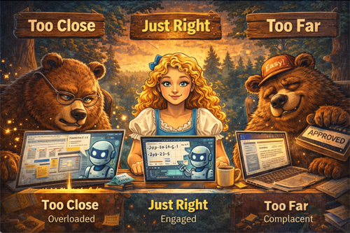 - Too far: you’re approving outputs you can’t evaluate or just being too lazy to think through, and your role becomes “rubber stamp.” AI hurts by eroding the very competence needed for judgment.