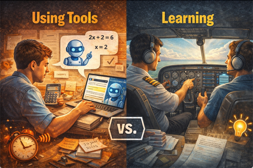 For learning, the key distinction is this… AI can help you perform, but performance is not the same as learning. Learning is a change in what you can reliably do later, under variation, without support. I can sit in a pilot seat and move the controls with constant instructor input, but that does not mean I’ve learned to fly.