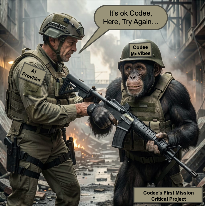 So. For AI tooling… It almost doesn’t matter what tool you’re using, these things are potentially risky in terms of usage failure modes right now and will likely continue to be so for the next several years. The risk spectrum runs from a bit of waste, to losing significant money, to the terrible liability and emotional costs of potentially hurting people. Even spending billions on data centers and availability seems to not always keep up with the growth in any case. There are still major and minor failures here or there, from actual customer facing product to internal platform billing consoles. There’s obviously use case differences between using AI for internal studies, learnings, analysis, etc. vs. production tooling. But right now, I’m focused on production tooling. Have backups and failovers for any mission or safety critical MLOps; just as you likely always have for other aspects of your business. People seem to be putting AI tooling into critical paths for some ops, but “vibing” DevOps is probably not the best idea. Now, if the failure is someone can’t order the latest widget from an eComm site, that sucks, but ok, fixable. On the other hand, failures with something medical? Mission or safety critical? Maybe that vibey solution just turned into someone’s introduction to liability law.